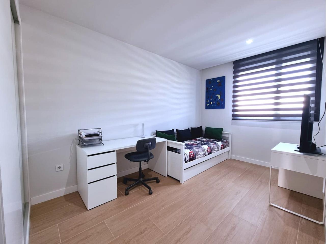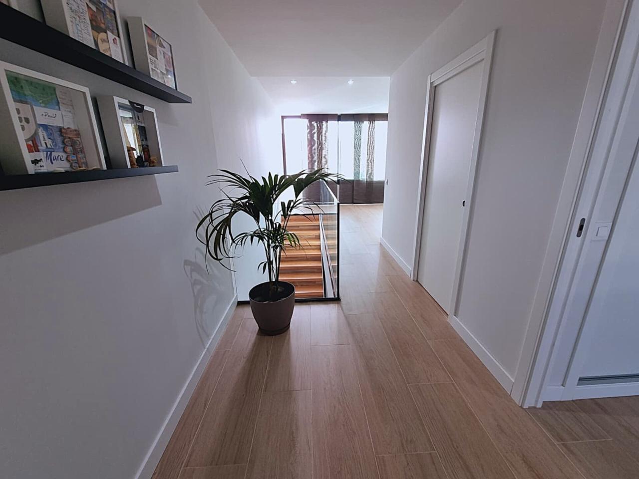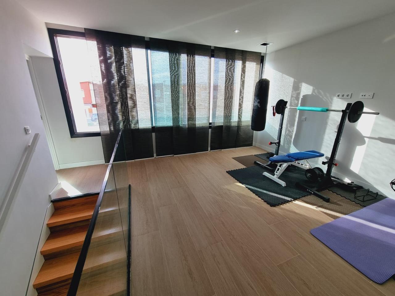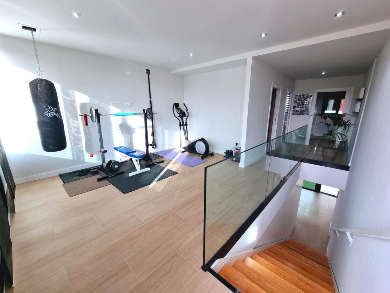 Planta Alta, privacidad y espacio: • Suite principal: Una estancia de tranquilidad, con vestidor y baño completo. • Más habitaciones y baños: Además de la suite principal, otros dos dormitorios amplios y un segundo baño completo en el distribuidor. • Espacio versátil: Una zona adaptable (actualmente destinada a gimnasio) lista para transformarse, por ejemplo, en un 4º dormitorio, tu oficina de teletrabajo, o sala de lectura.