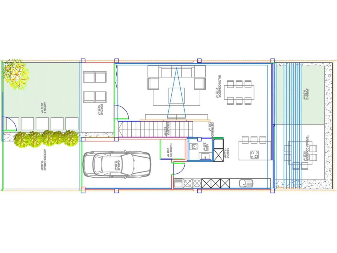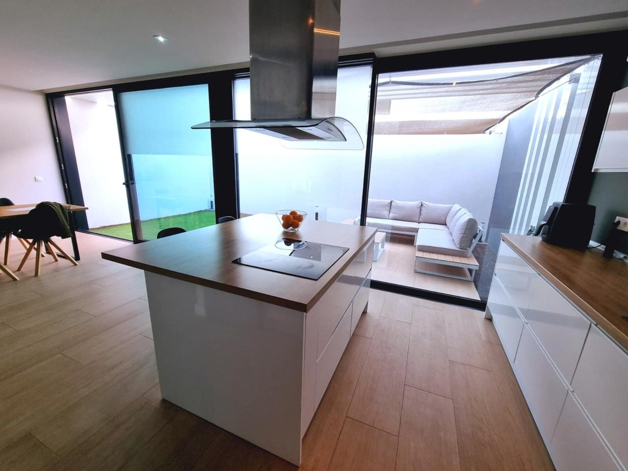 Planta Baja, el corazón de la casa: • Espacios exteriores: Recibe a tus invitados en un jardín delantero soleado, el rincón perfecto para relajarse. En la parte posterior, una terraza privada ideal para cenas al aire libre. • Área social: Un salón-comedor de grandes dimensiones con moderna cocina con isla, totalmente equipada (horno, microondas, nevera y lavavajillas). • Funcionalidad: La planta baja incluye solana y aseo. • Comodidad: Garaje privado cerrado, y además, espacio exterior adicional dentro de la parcela, junto al jardín delantero, que puede utilizarse como aparcamiento para un segundo vehículo.